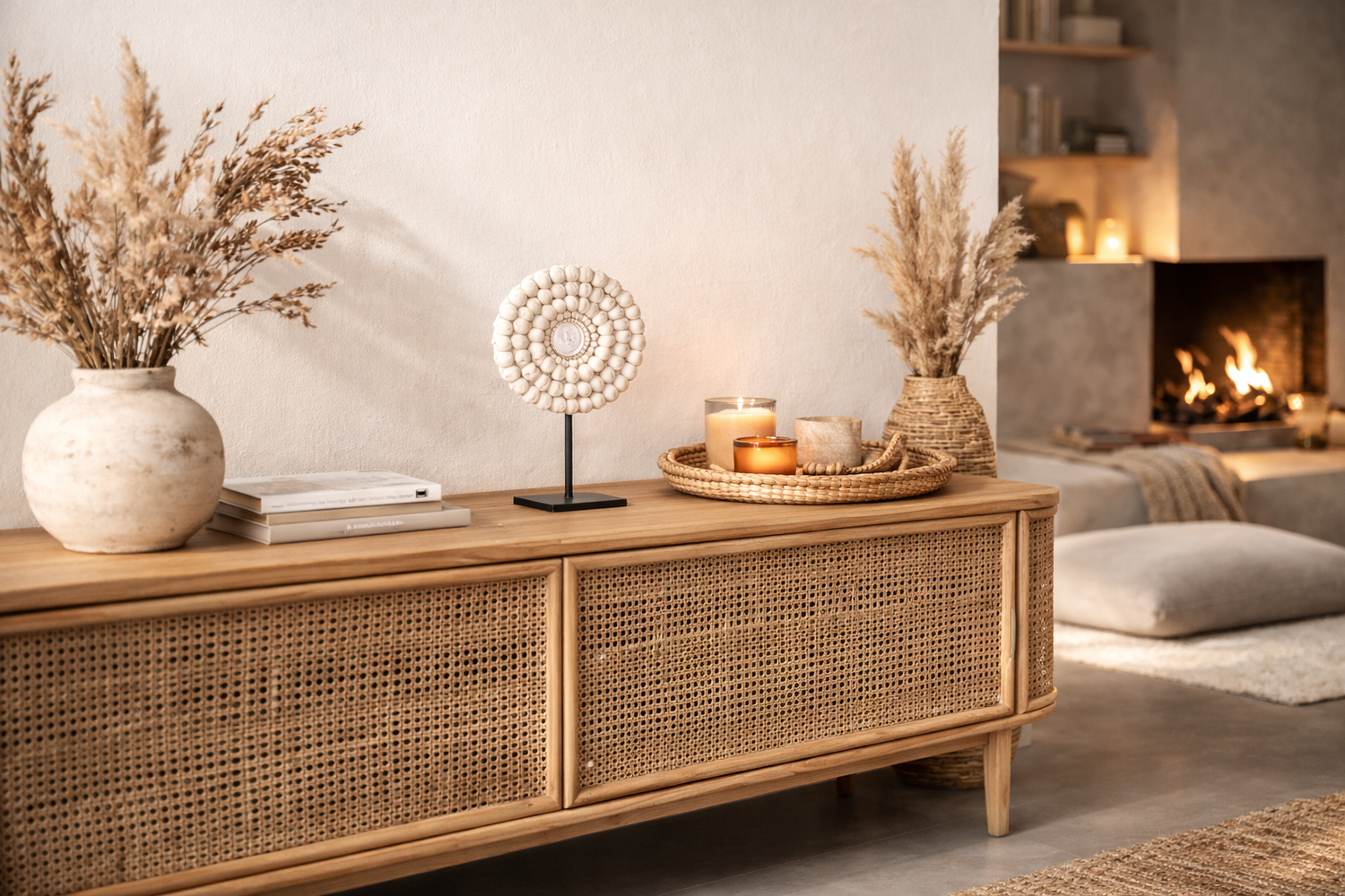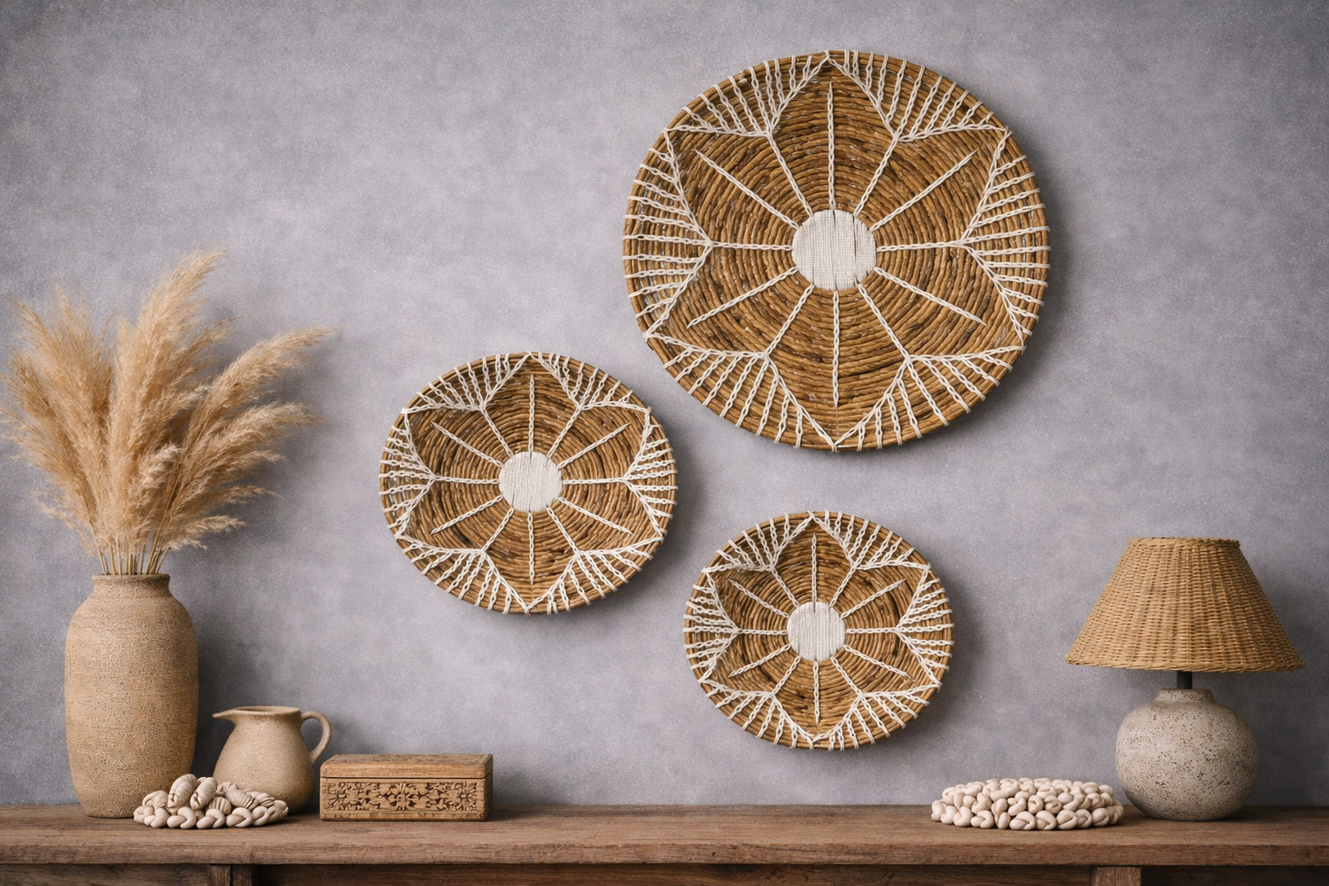 Des décorations murales en matières naturelles, choisies pour apporter relief et caractère...