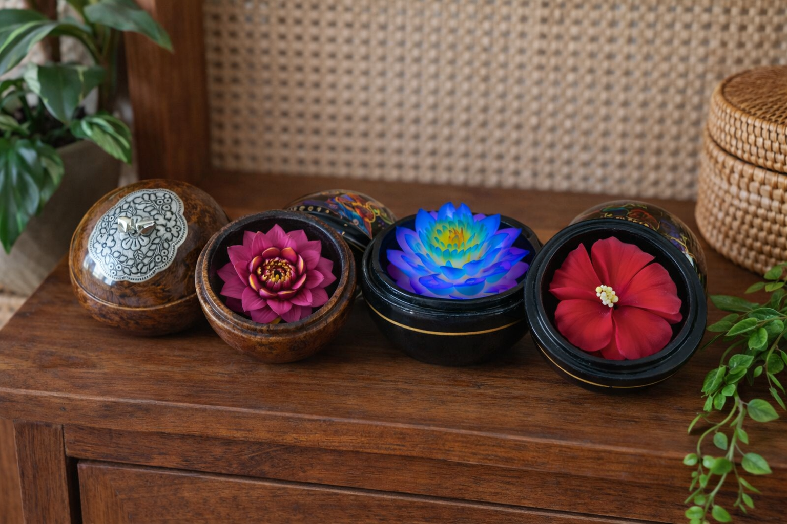 Ces bougies fleuries en savon sont de véritables objets décoratifs, entièrement fabriqués à la main en Thaïlande par des artisans locaux. Chaque pièce est sculptée avec minutie, pétale par pétale, pour anciennement une fleur délicate et raffinée, inspirée de la nature et de l'art traditionnel asiatique.
