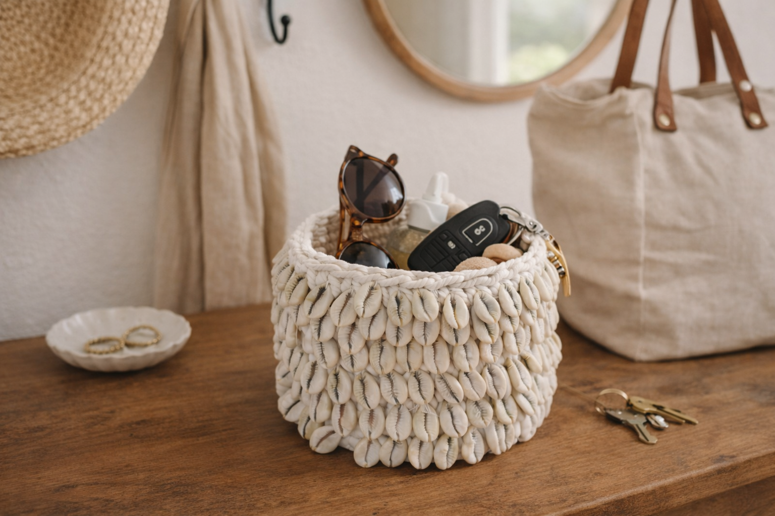 Corbeille Macramé & Coquillages "Tissage des mers" - Artisanat Balinais